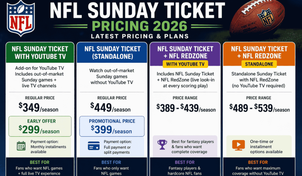 As one of the most popular sport leagues in the world, NFL Sunday Ticket Price is an essential subscription for football fans who refuse to miss a single out-of-market game. Sunday Ticket has been a different story, though, with pricing and availability changing over the years as it made the leap from satellite TV to streaming platforms like YouTube TV. This detailed blog will break down the 2026 NFL Sunday Ticket price, plans, features and discounts as well as whether it’s worth all that money.