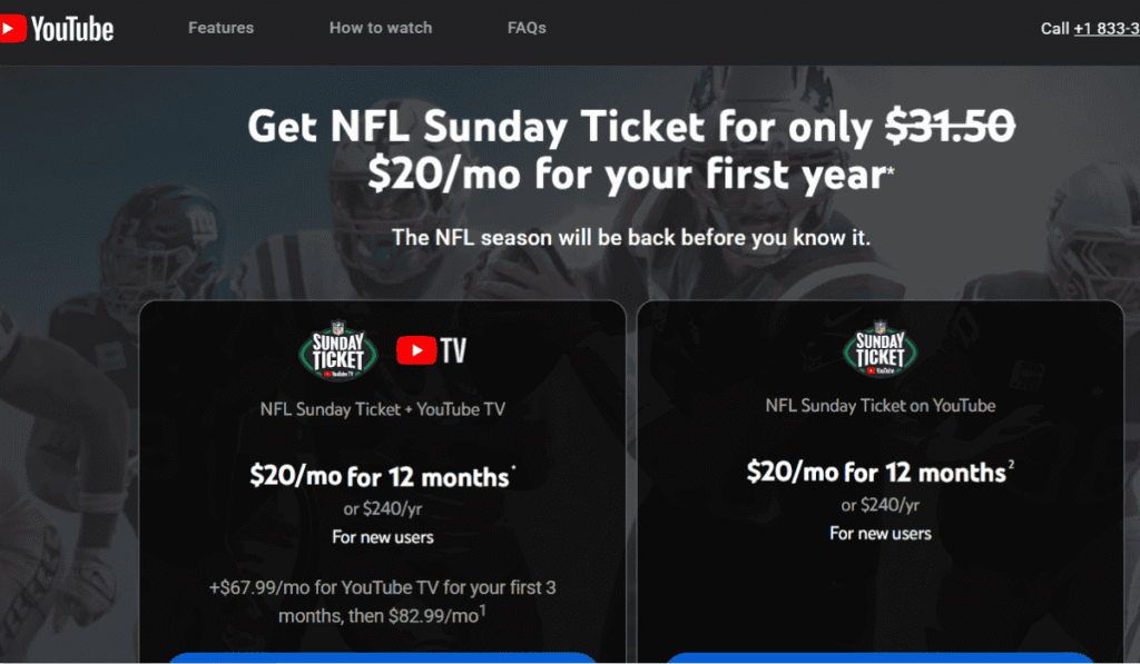 2. How to get NFL Sunday Ticket Price without YouTube TV